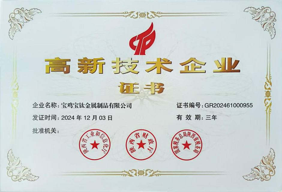 寶雞寶鈦金屬制品有限公司被認(rèn)定為高新技術(shù)企業(yè)